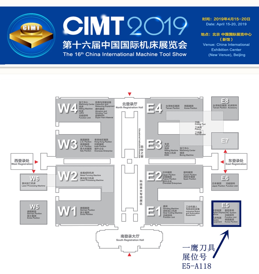 2019年4月15日至4月20日,東鷹公司(一鷹刀具)與你相約北京•中國國際展覽中心(新館),CIMT中國國際機床展覽會,…